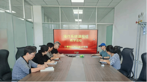 操作系统课程组在软件实验大楼506会议室开展教学研究活动。参加会议的有课程组安道新、张元、杨晓文、孙福盛、庞淑蓉五位老师,以及计算机科学与技术金沙