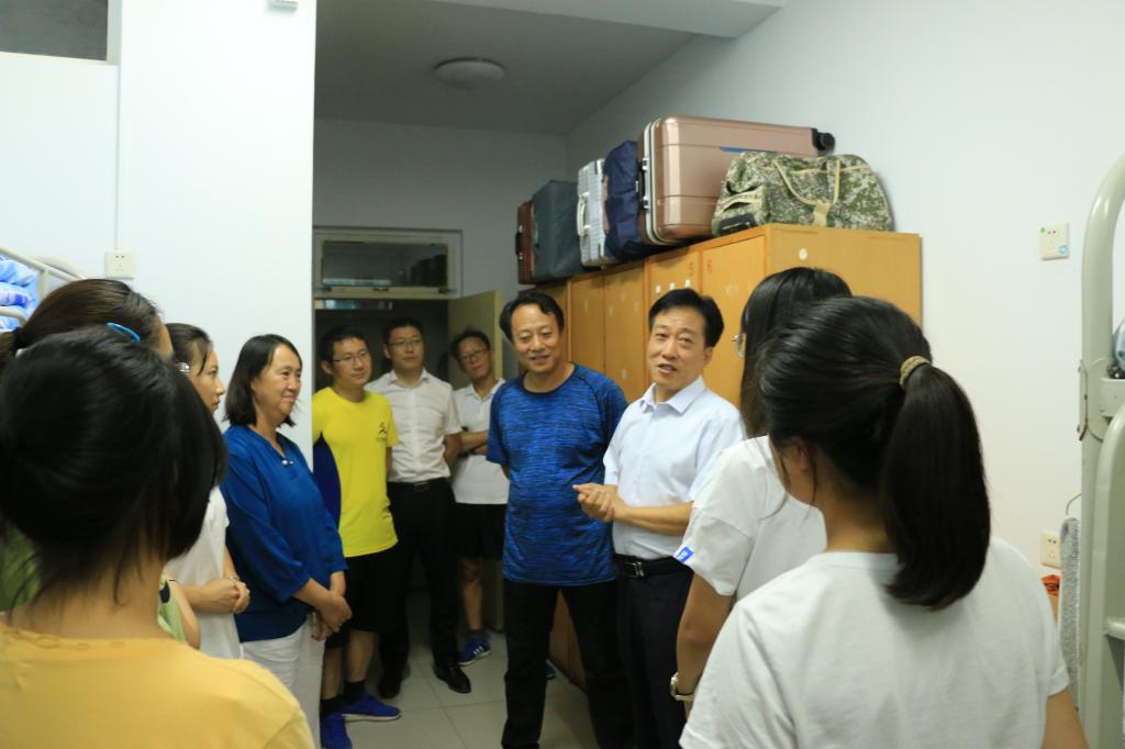 组织开展慰问2019级新生工作。9月7日晚7点,副校长雷锋斌、院党委书记郭书杰、院长韩燮、院党委副书记杨晓东、副院长秦品乐、副院长况立群、党委委员梁志剑,学生科老师和各班班主任共同前往19级新生宿舍慰问新生。