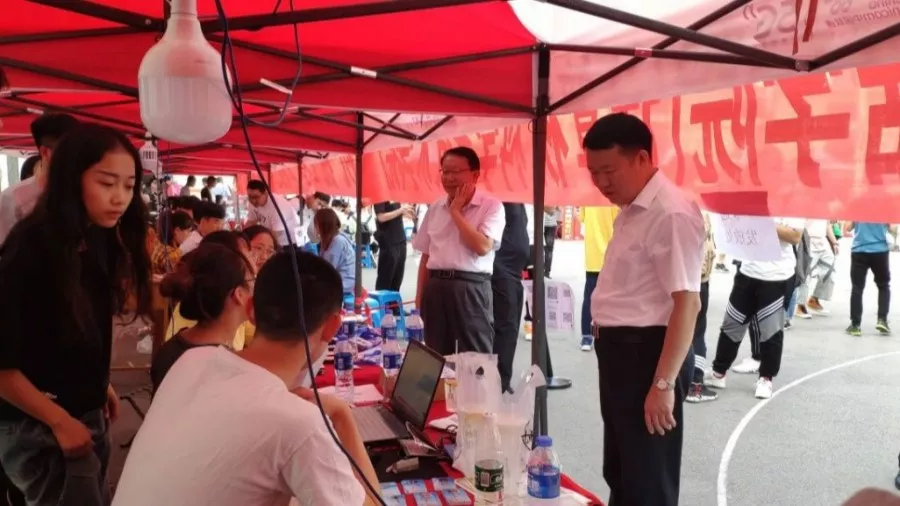 金沙 校长沈兴全、校党委书记李忠人一行也到达了大本营,亲切慰问现场的迎新工作,看着不断到来的新同学和认真工作的志愿者,他们的脸上露出了满意的笑容。