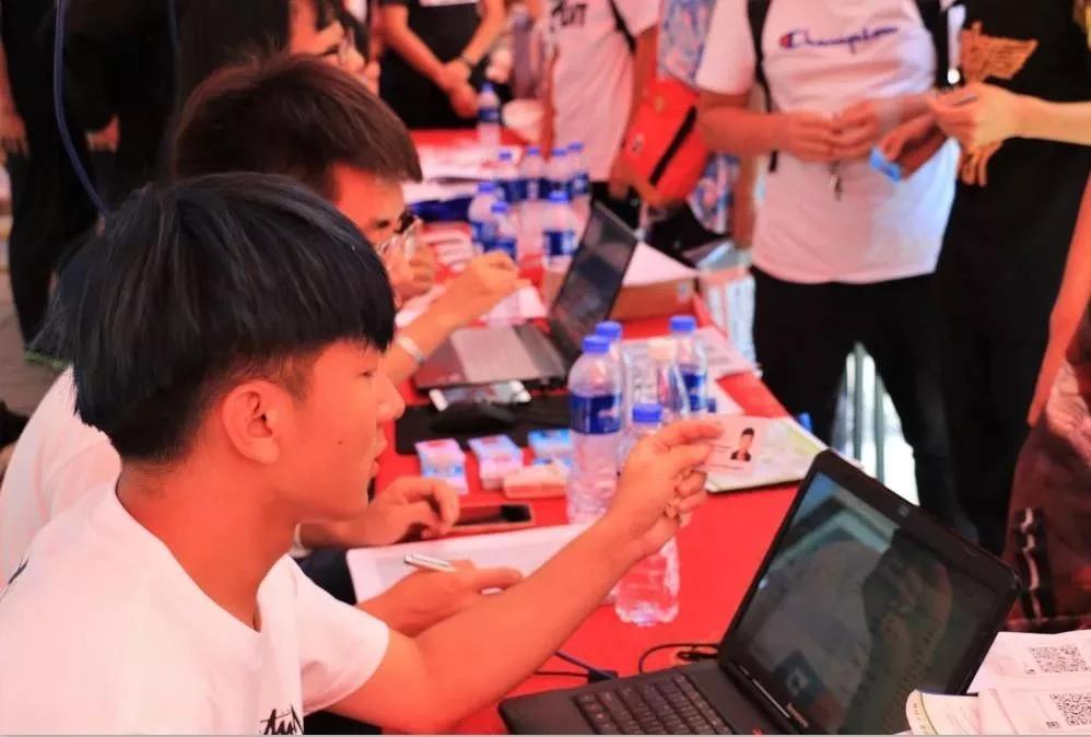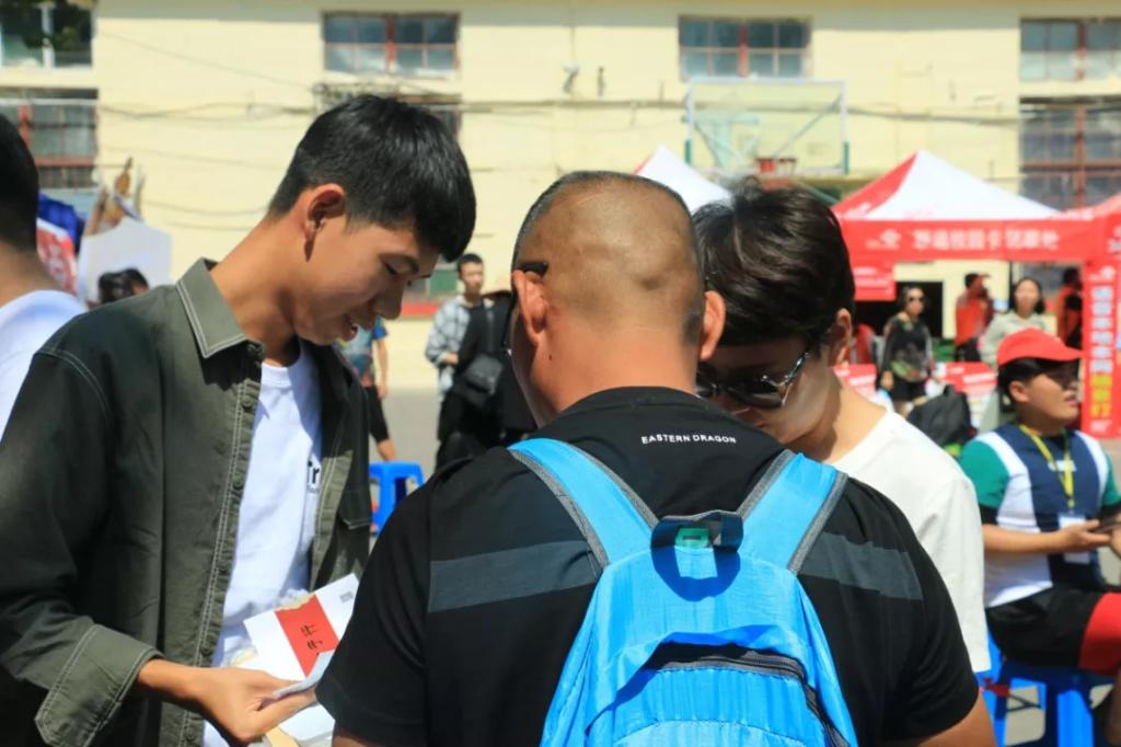 才刚过六点半,就有许多新同学和家长一起,提着大包小包的行李前来报道了。我们的工作人员早已做好迎接新同学的准备,一卡通、住宿证… …一切证件都已备齐,丝毫不会遗漏任何东西。在大本营的帐篷上,贴有新生家长群和金沙 公众号二维码以及班主任联系方式,工作人员耐心细致地指导家长进行操作。