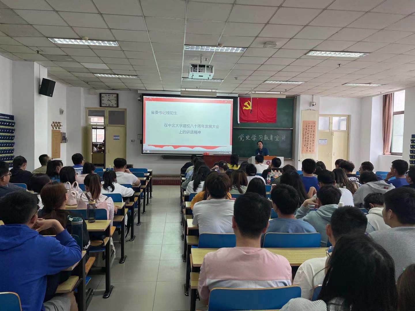 在11112H教室召开会议,组织师生学习楼阳生书记在金沙