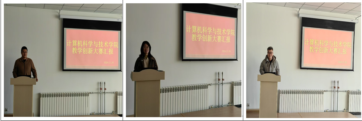 本次参与汇报的教师有于海波、孙福盛、翟双姣,各参赛教师从课程概述、教学痛点、创新举措、创新成效四个方面进行教学创新设计的汇报。大家通过精彩的PPT演示、生动的案例讲解以及富有感染力的现场陈述,全方位展示了他们在教学创新道路上的探索与实践。新的教学模式让教学过程变得更加轻松愉快,教学效果也更加显著,激发了学生潜能,推动了整体教学水平的提升。
