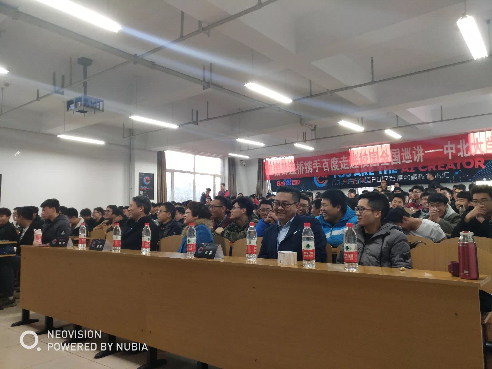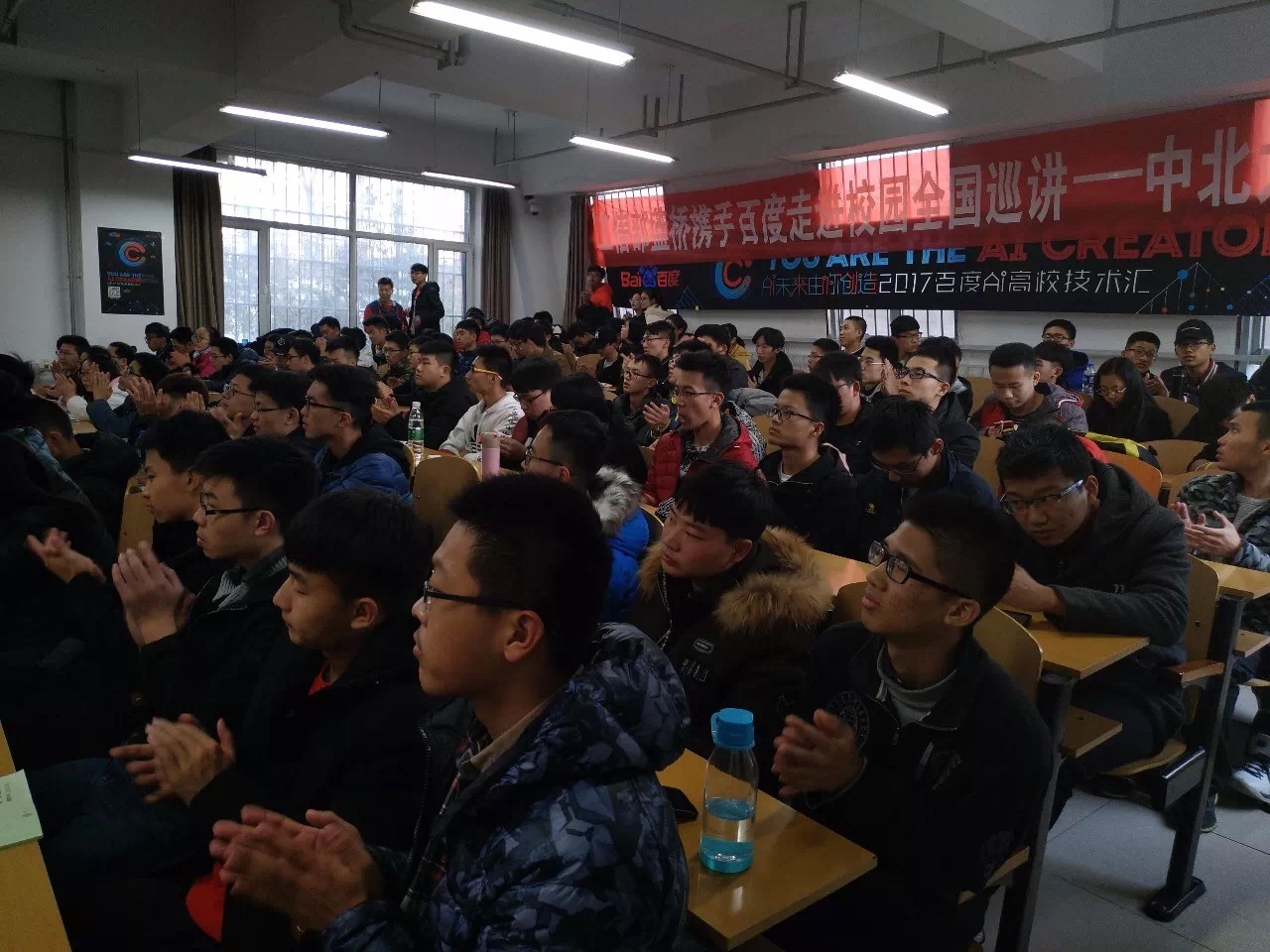 以及AI的相关知识,同时为相关专业的大学生们分享了中国目前AI的发展以及百度的技术开放生态与技术平台。王楠老师通过视频与讲解相结合的方式为同学们进行宣讲,形象生动,妙趣横生,在场同学们都认真倾听,主动融入到宣讲中,全程与老师积极互动,现场气氛热烈。