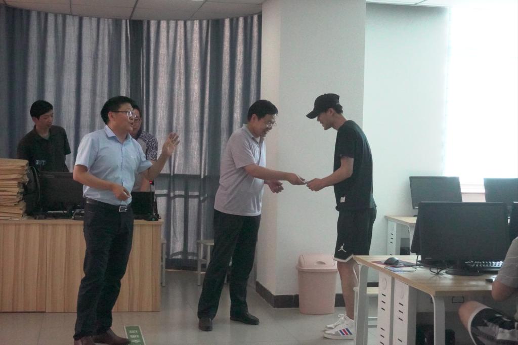 大会第二项,由雷主任致辞,他表达了对这门课程的殷切希望,接着他为19070542班的宝宸宇颁发一等奖。大会最后,对金沙 该课程大力支持的贾总采用视频连线的方式为同学们介绍了安豆金沙 的相关信息,激励同学们奋发向上,并且表示愿意为同学们将来的发展提供帮助和支持。