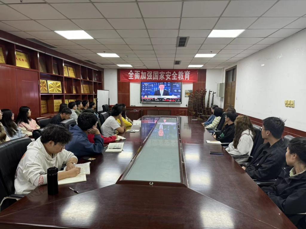 于主楼919组织师生党员干部集中观看央视《新闻联播》和《焦点访谈》国家安全教育专题报道,随后组织讨论交流。