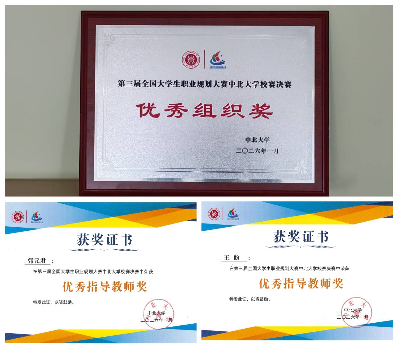 郭元君老师和王盼老师荣获大赛“优秀指导教师奖”。