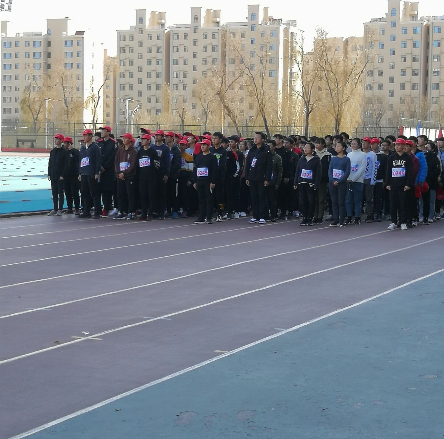 比赛共分为竞赛组和群众组两个组:竞赛组由每院选拔十人组成,全校共160人参加;群众组每院出50人,全校共800人参加。赛前每人都佩戴号码布用于记录名次,集合与主操场前,听候校领导活动安排,做好赛前准备,渴望为自己金沙 争光。