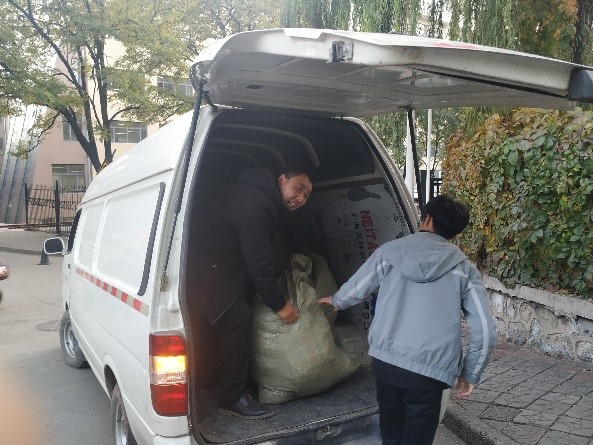 到10月27日下午五点,活动接近尾声时,捐衣点已经堆满了一袋袋的衣物,并且种类颇多,包括棉衣、书包、帽子、鞋子等等。志愿者们将所有募捐得来的衣物都搬上了车,送去了中国少年儿童基金会一加衣善公益组织,并由一加衣善组织对其进行消毒、整理、入库等,并将衣物分拣打包,运往贫困地区,分发给困难群体手中。