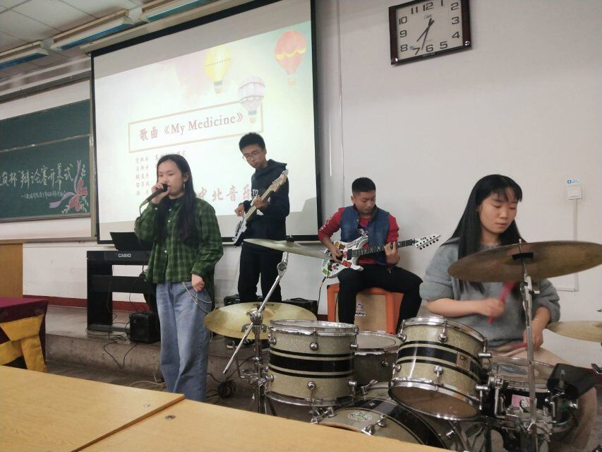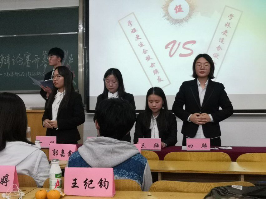 在大金沙 学生会主席刘川瑜学长热烈的致辞下,活动正式开始。本场活动不仅呈现一场精彩绝伦的辩论表演赛,在“是选择学姐还是学妹做女朋友”辩题下进行激烈的辩论外,更有“无人区玫瑰乐队”为我们带来了好听的歌曲,让在场的全体人员享受了一场视听盛宴。