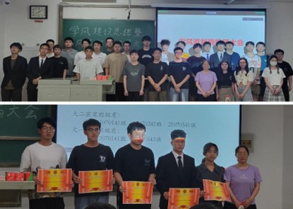 接下来,学风监督岗新任负责人鹿殷、组长王通通和杨能东结合查课、早操早读、乐跑、博士下午茶、22级新生成长导师启动仪式等内容回顾了本学期学风建设情况。之后,22070542班学习委员巩彦程作为优良学风班级代表发言,分享了本班学风建设的经验。