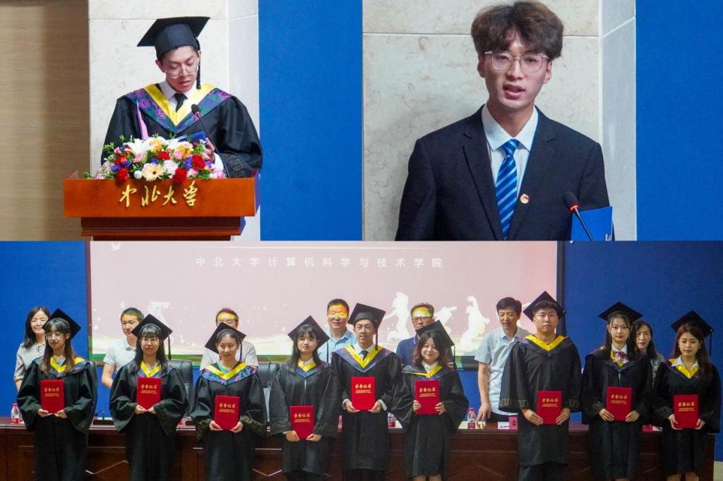 近几年在教学、科研、育人方面取得的骄人成绩对毕业生的支持和配合表示感谢,并希望大家常怀感恩、砥砺前行;接下来进行了校级优秀毕业生和院级优秀毕业生的颁奖环节;之后,毕业生代表秦昇在发言中表达了对老师们谆谆教诲的感激和对大学生活的不舍,在校生代表刘泽同则为学长学姐们送上深深的祝福;最后,喻华兵书记代表院党委、院行政向金沙